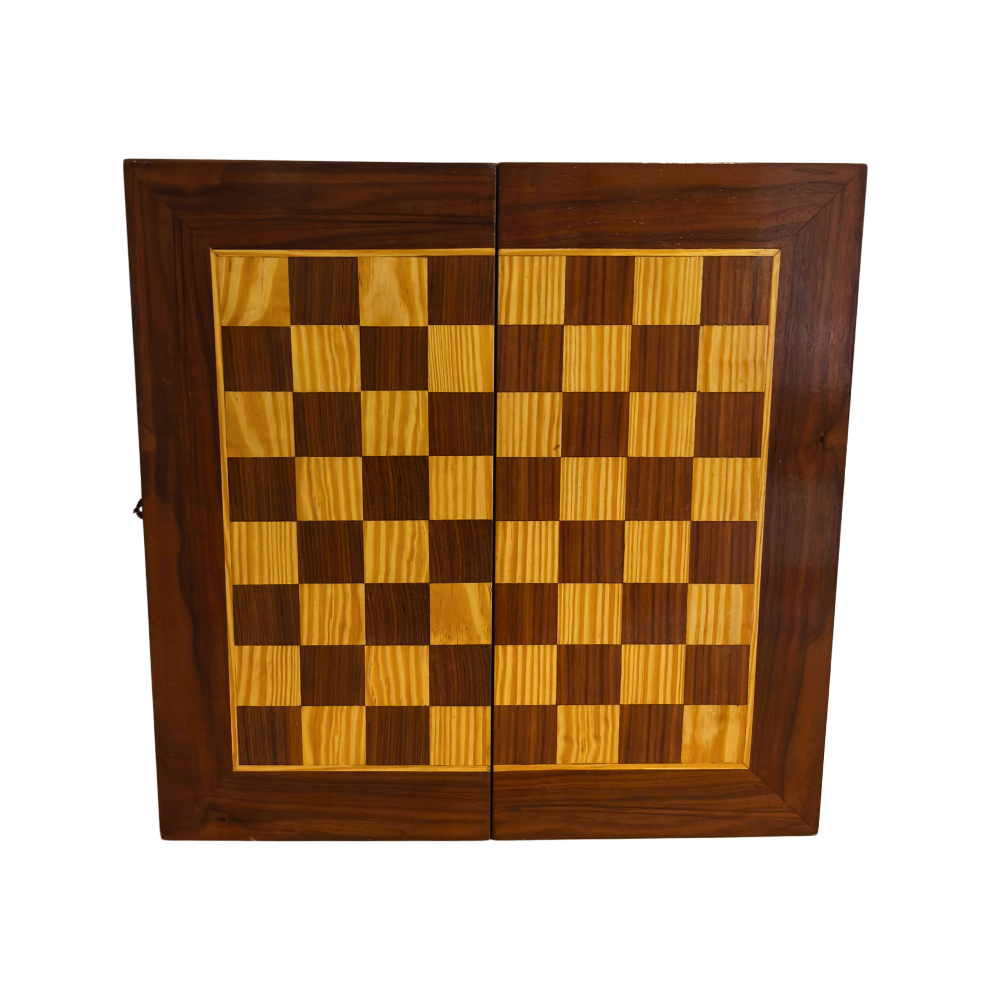 Dieses exklusive Set enthält Schach- und Backgammonfiguren aus Holz sowie Würfel – perfekt abgestimmt auf das elegante Design.