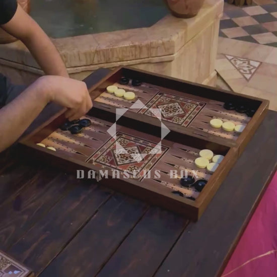 Handgefertigter Damaszener Schach- & Backgammon-Tisch von Gaby Al Dayeh – Klassisches Mosaikdesign