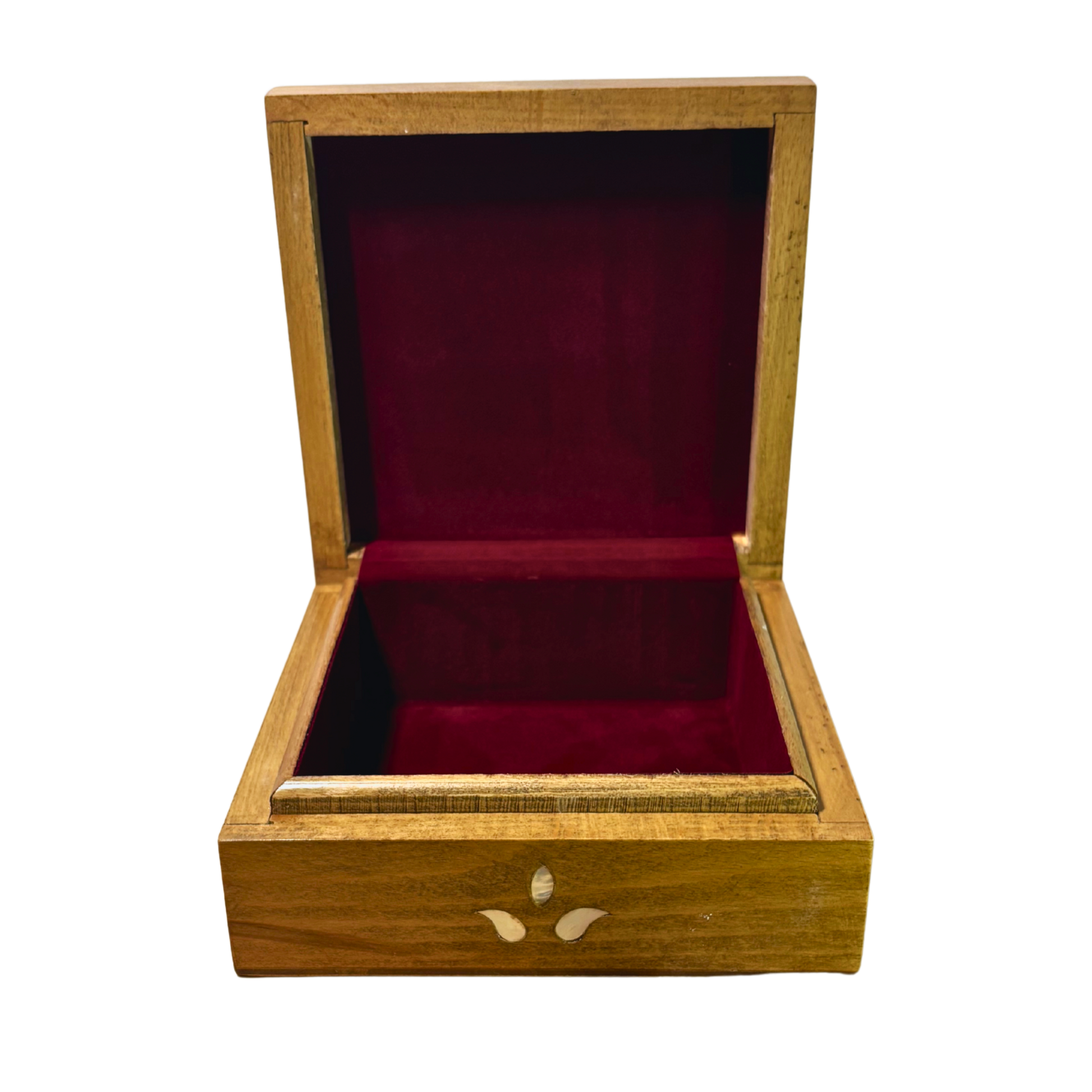Mit einem hellen Walnuss-Finish, echter Perlmuttintarsie und weinrotem Samtfutter vereint diese Box elegante Materialien mit meisterlicher Handarbeit – ein zeitloses Kunstobjekt für Anspruchsvolle.