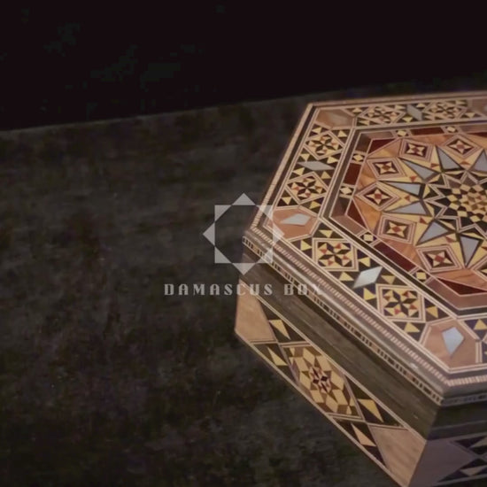 Caja de mosaico damasceno, caja artesanal de nácar, artesanía siria, caja oriental de madera, regalo artesanal de lujo, Damascus Box