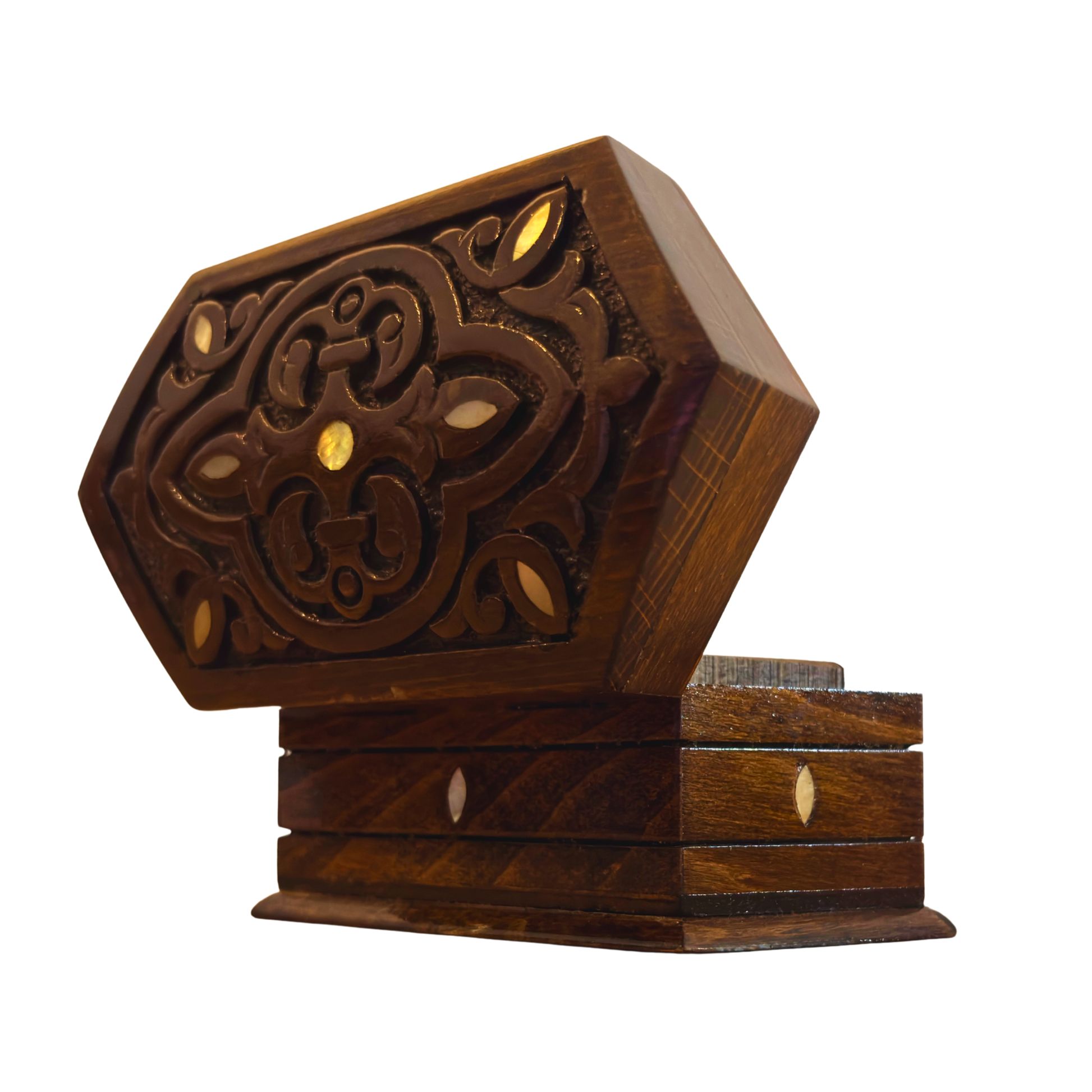 Każde pudełko jest ręcznie rzeźbione, dzięki czemu każda sztuka ma swój indywidualny charakter i duszę.