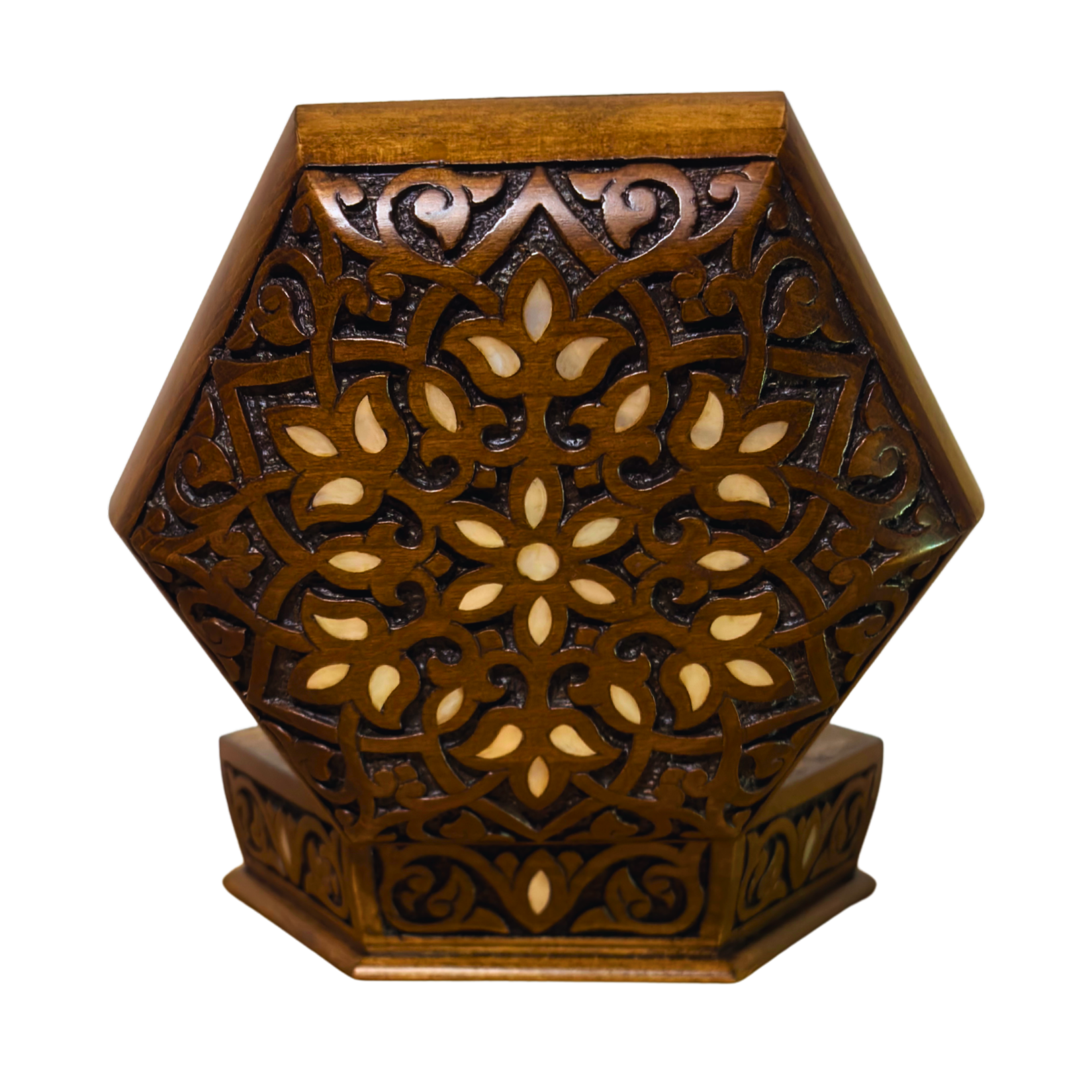 rzeźbiona szkatułka, szkatułka z masą perłową, rzemiosło z damaszku, luksusowa szkatułka, sześciokątna szkatułka, Damascus Box