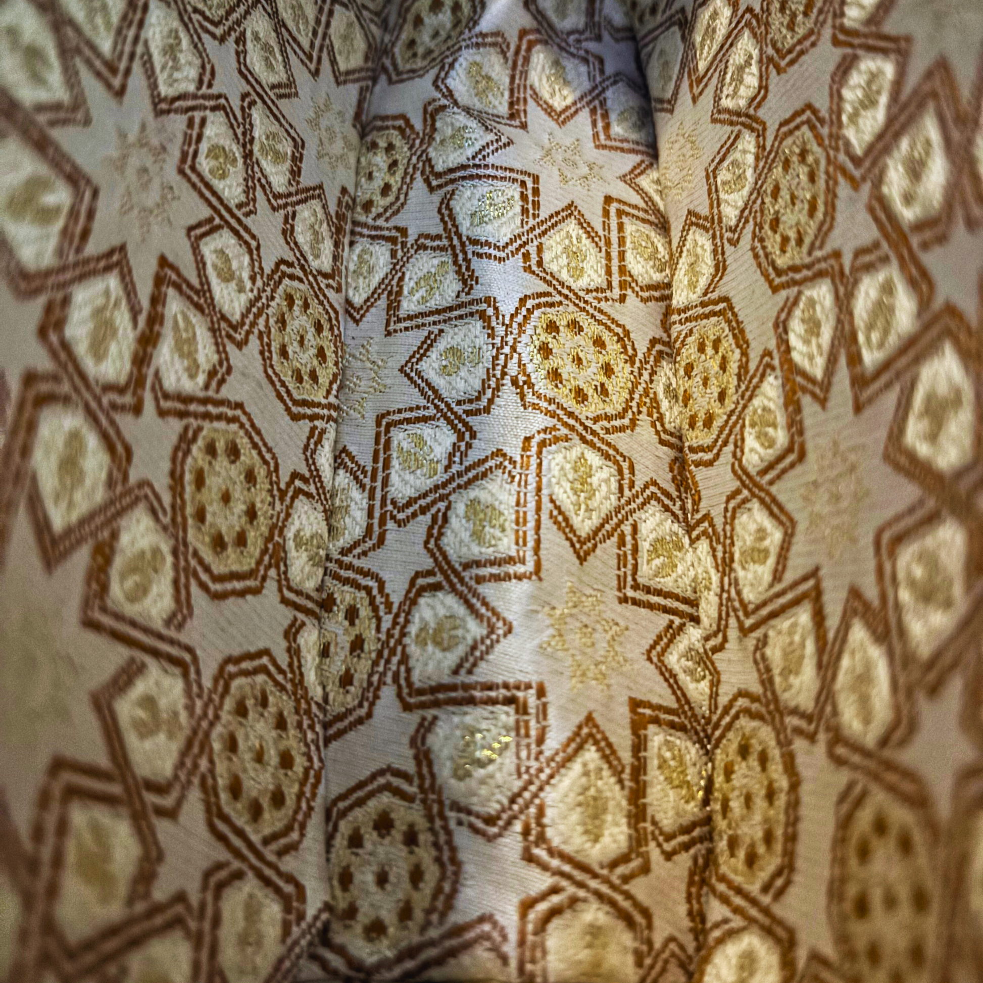 İç kısımda yer alan zengin Dımaşki brokar astar, krali bir ihtişam ve kültürel derinlik katar.